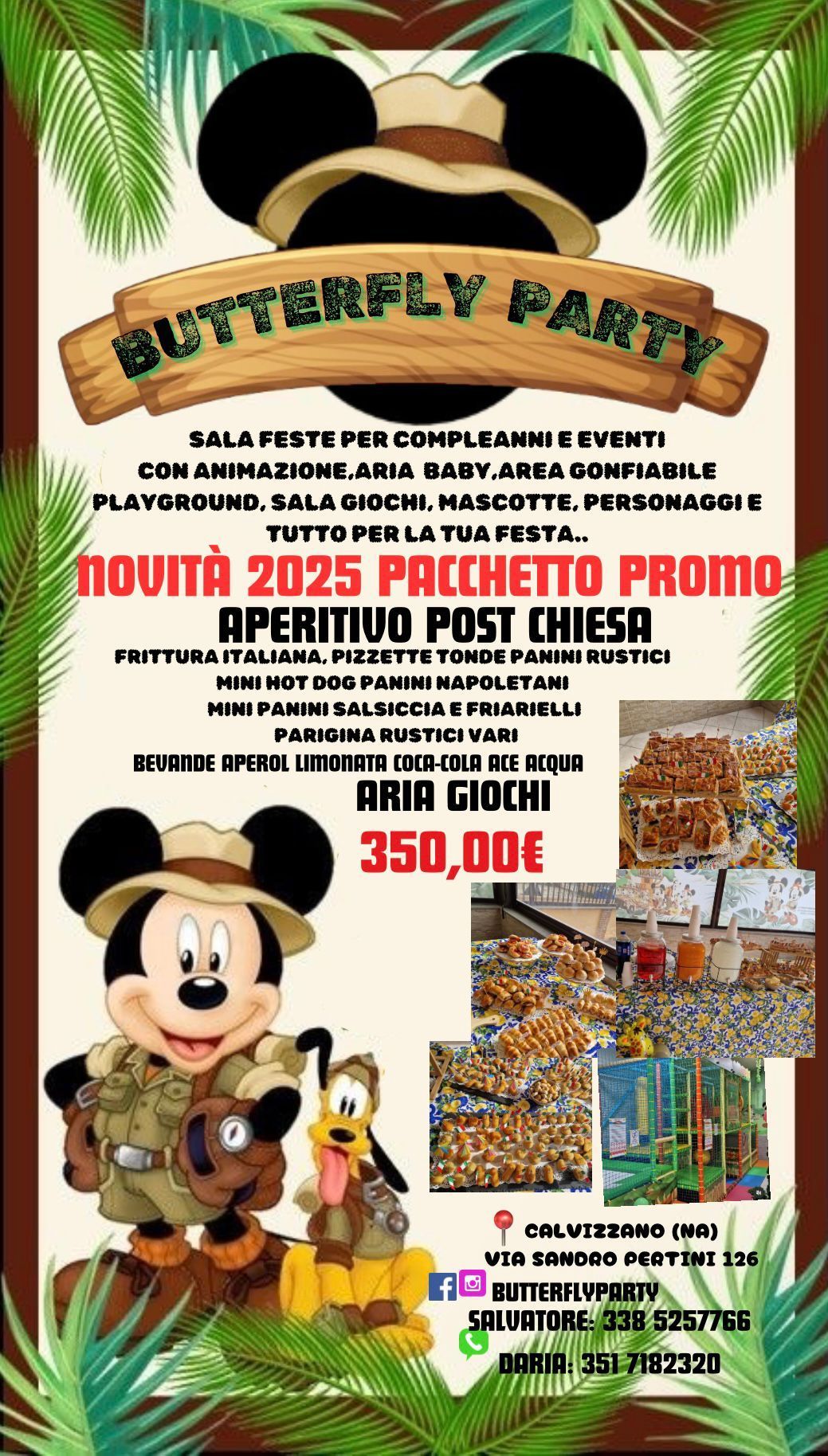 Benvenuti da Butterfly Party, la ludoteca e sala eventi più divertente di Calvizzano e dintorni! Con il nostro playground e il jumping gonfiabile, vi garantiamo ore di gioco e allegria senza fine. Situati tra Marano di Napoli, Mugnano, Villaricca, Qualiano e Giugliano, siamo il luogo ideale per feste indimenticabili e momenti di puro divertimento. Organizziamo eventi su misura per tutte le esigenze, con uno staff professionale e pronto a rendere ogni momento unico. Venite a trovarci e lasciatevi conquistare dall'atmosfera magica di Butterfly Party!